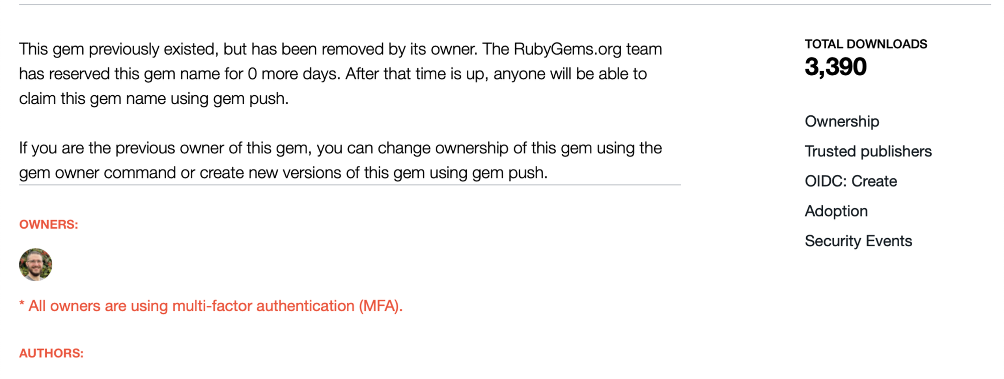 - We’ve introduced updates to ensure gem owners retain access to critical controls even when all versions of a gem are yanked.